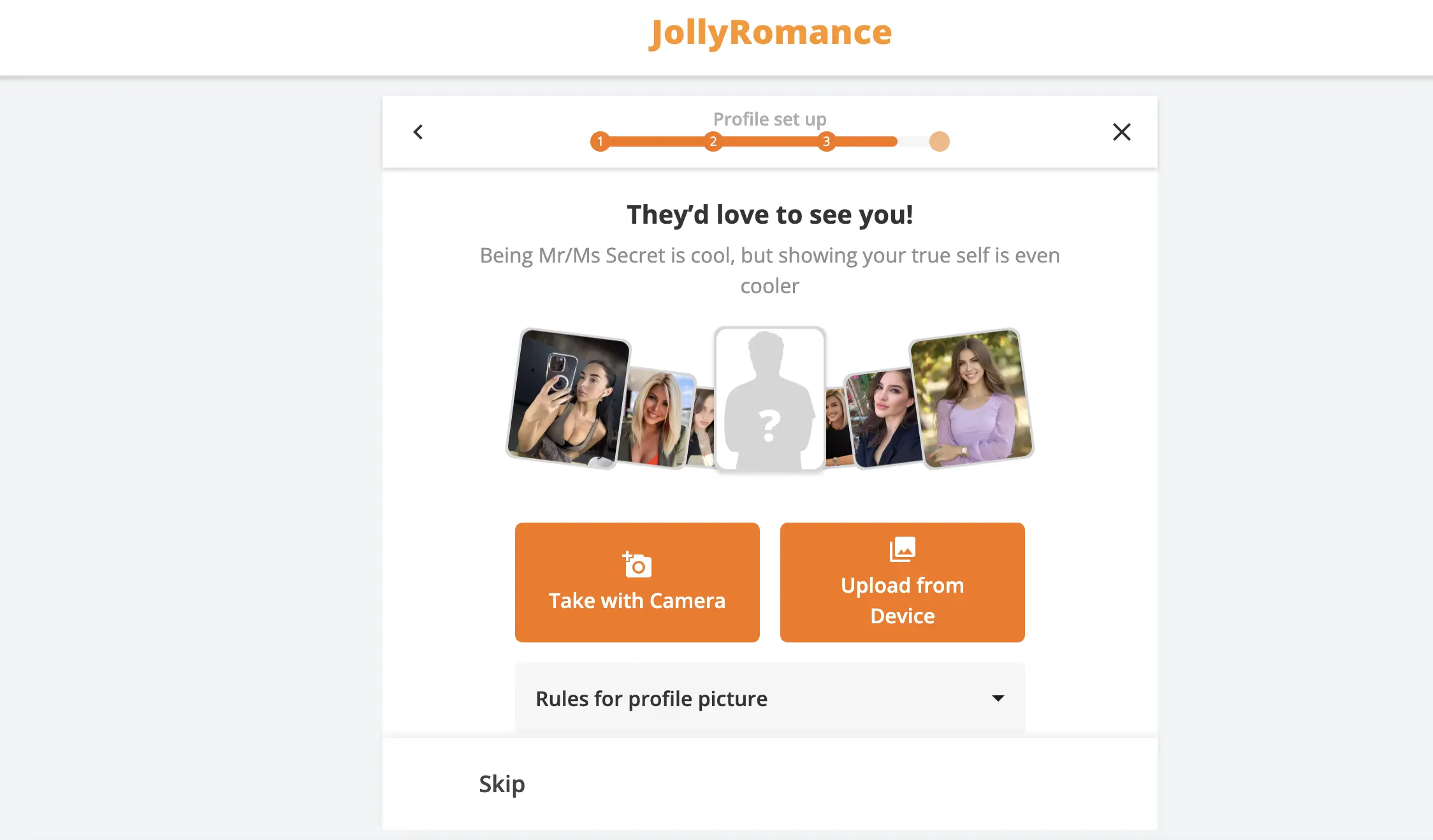 Registration on JollyRomance is quick, but each step is important in setting up your account and accessing all features.