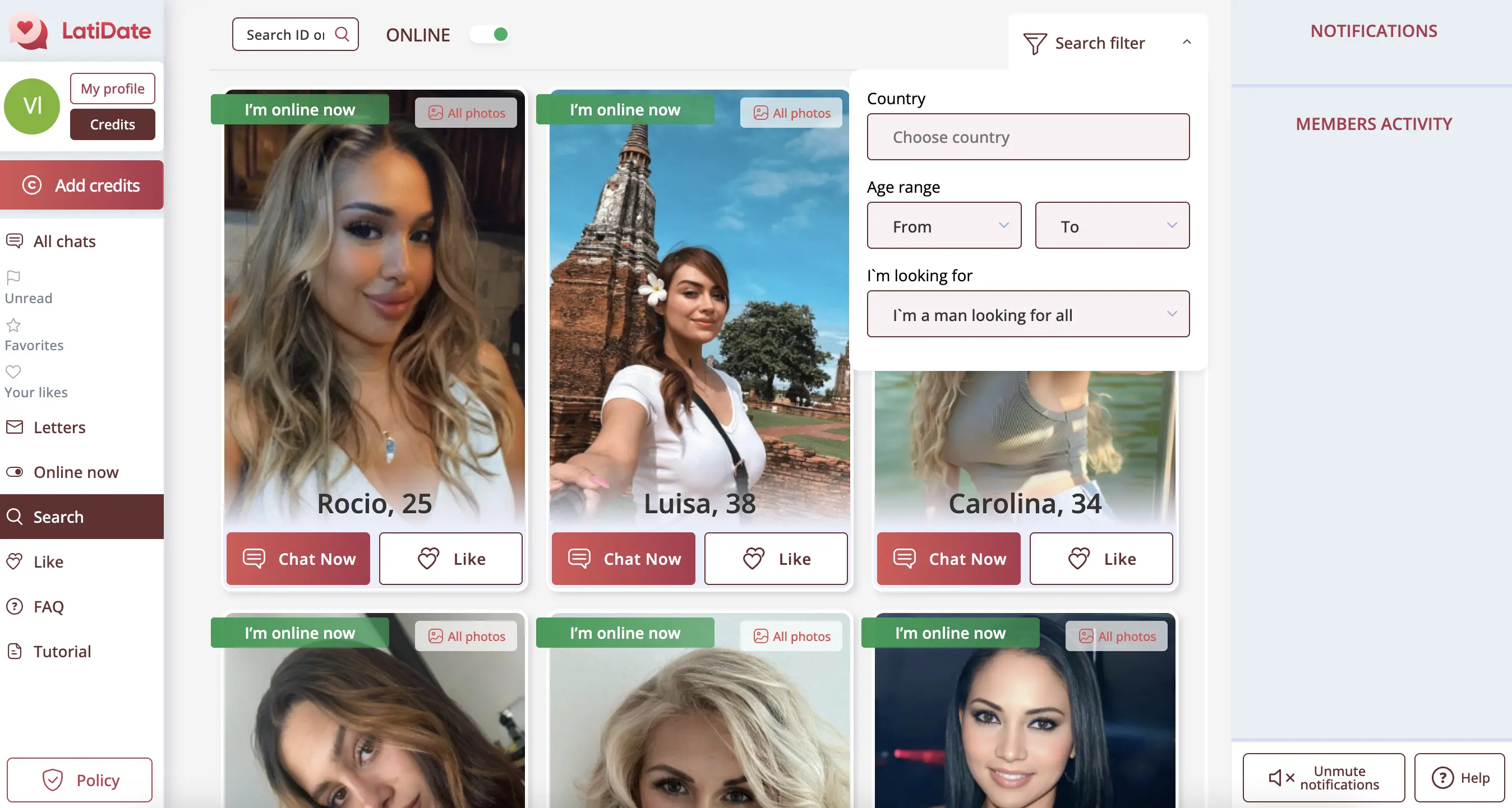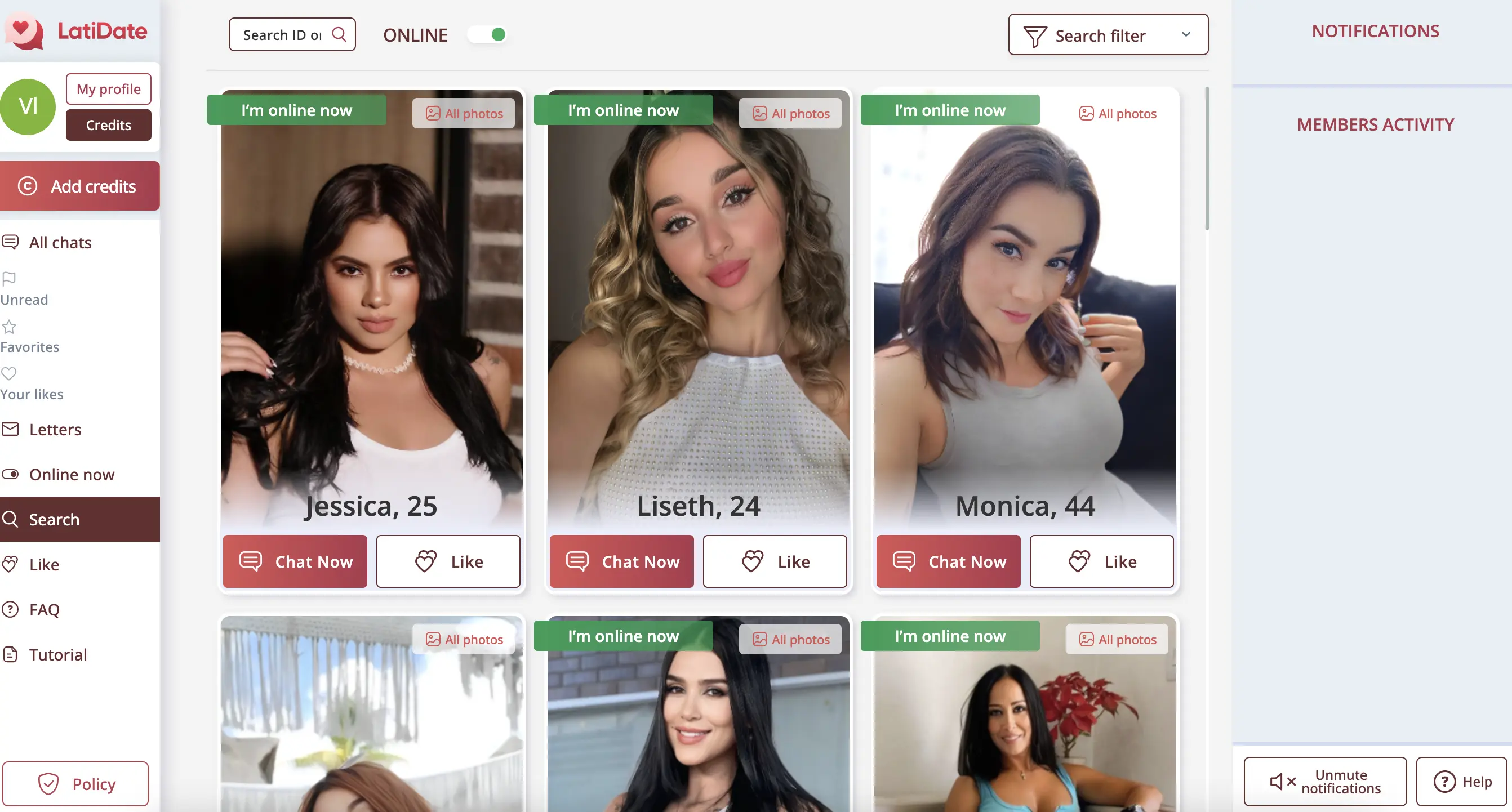 From my experience, LatiDate’s interface is functional but far from smooth. There are some positives, but several design choices clearly push users toward spending credits. Here’s what stood out: