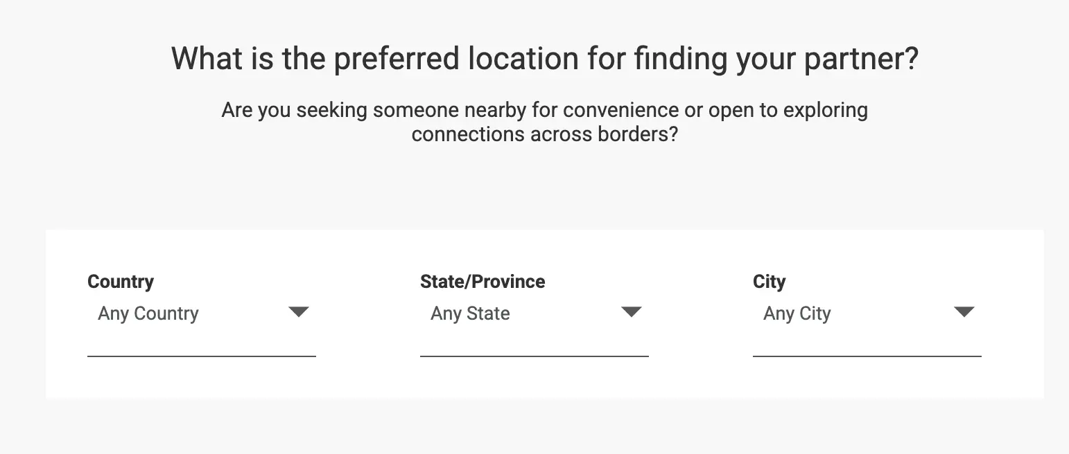 Your location and the region you want to meet someone in.